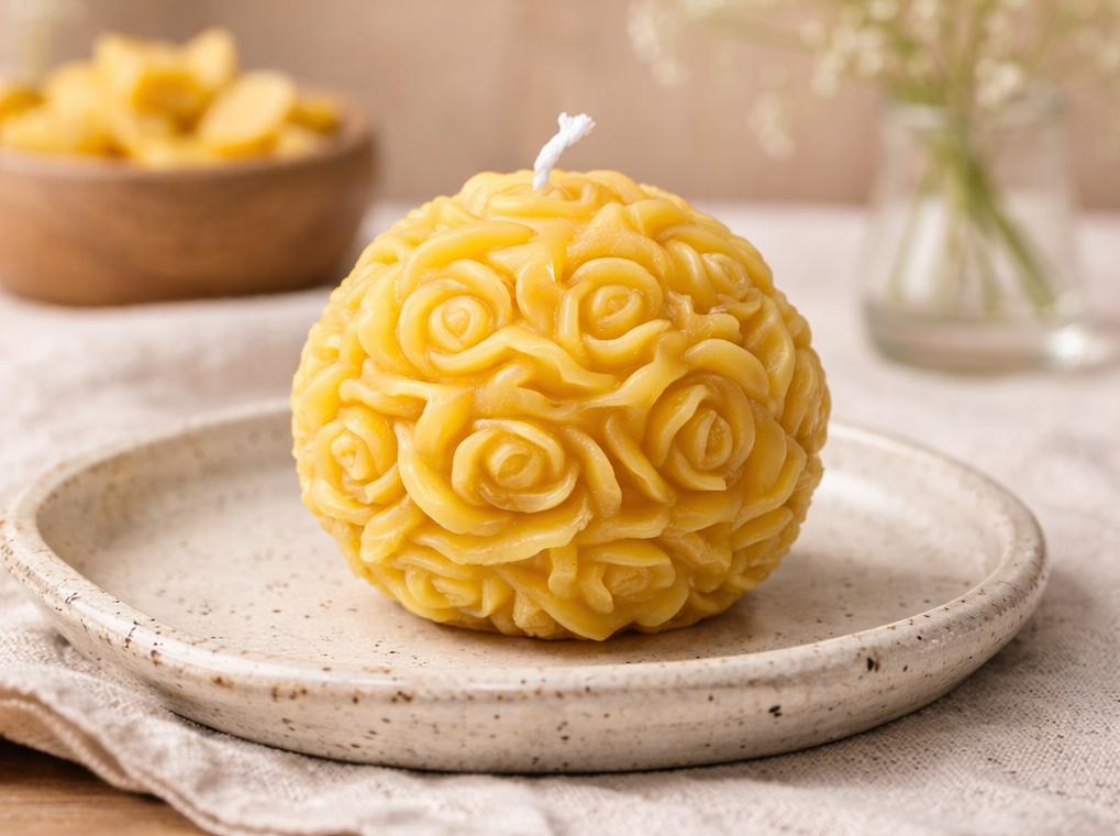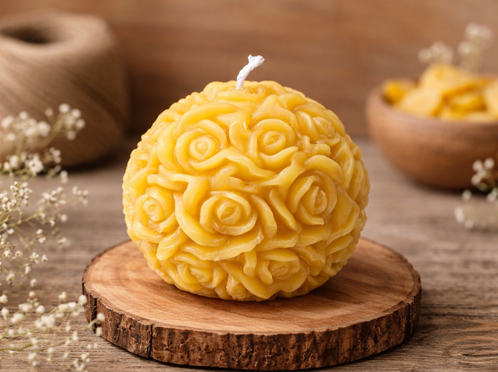 🌸 Premium Bienenwachskerze „Blütenkugel“