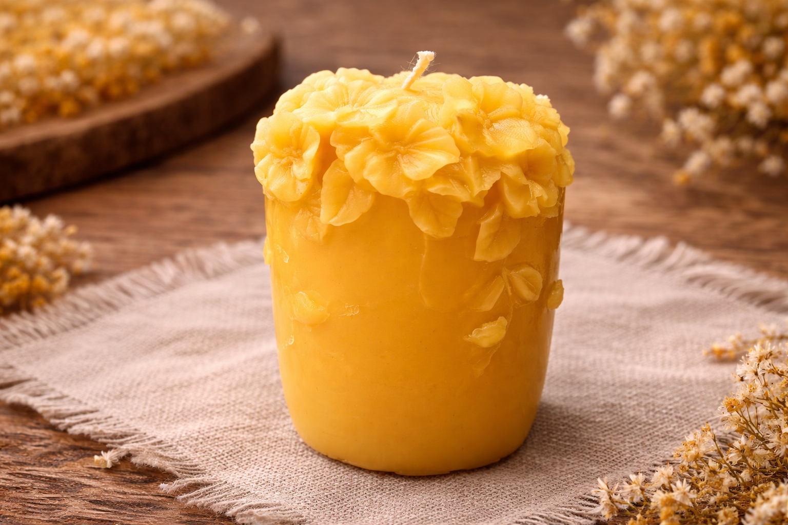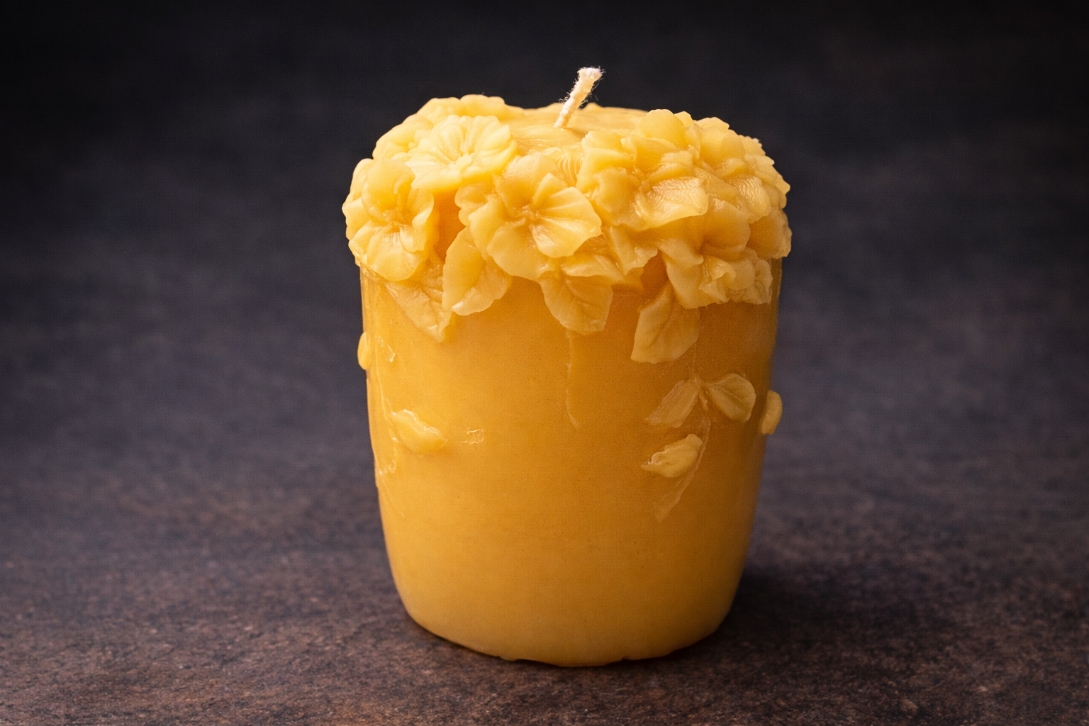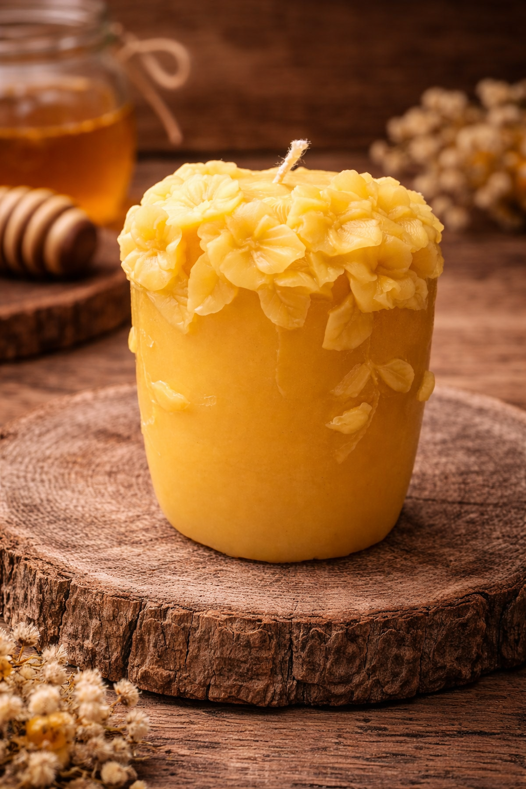 🌿 Natürliche Bienenwachskerze – Goldene Blüte