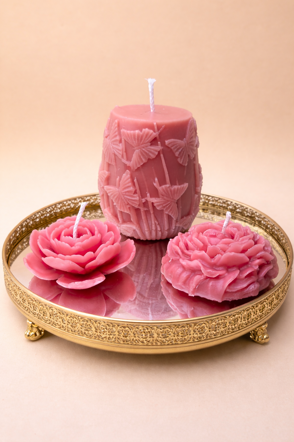 In einem warmen Rosaton, getragen vom Licht der Flamme ✨, erzählt dieses Kerzenset von Ruhe, Handarbeit und Zeit.