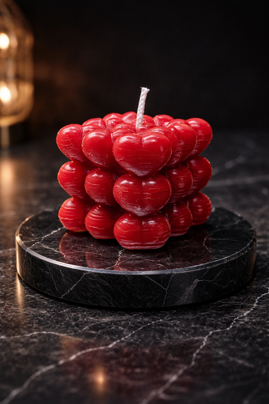 Diese Kerze steht für das, was bleibt. Für Nähe, Wärme und leise Emotionen. Die tiefrote Farbe wirkt kraftvoll und sinnlich zugleich – wie ein stilles Versprechen. Einzelne Herzen fügen sich zu einer klaren, harmonischen Form und schaffen ein Objekt voller Bedeutung und Eleganz.