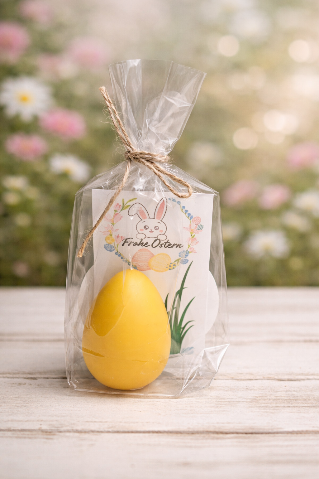Dieses kleine Osterei wird in sorgfältiger Handarbeit aus 100 % reinem Bienenwachs gegossen. Die warme, sonnige Farbe entsteht ausschließlich durch das natürliche Wachs – ganz ohne künstliche Duft- oder Aromastoffe.