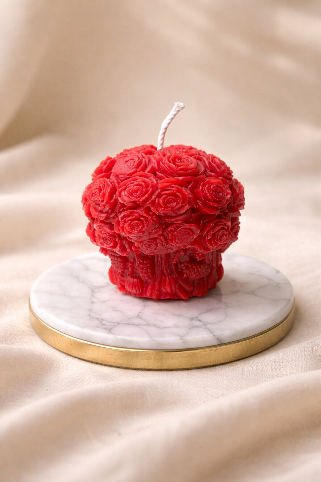 Diese kunstvoll gegossene Kerze vereint die zeitlose Eleganz der Rose mit der warmen Ausstrahlung von handverarbeitetem Wachs. Jede einzelne Blüte formt ein harmonisches Gesamtbild – kraftvoll, sinnlich und dennoch ruhig.
