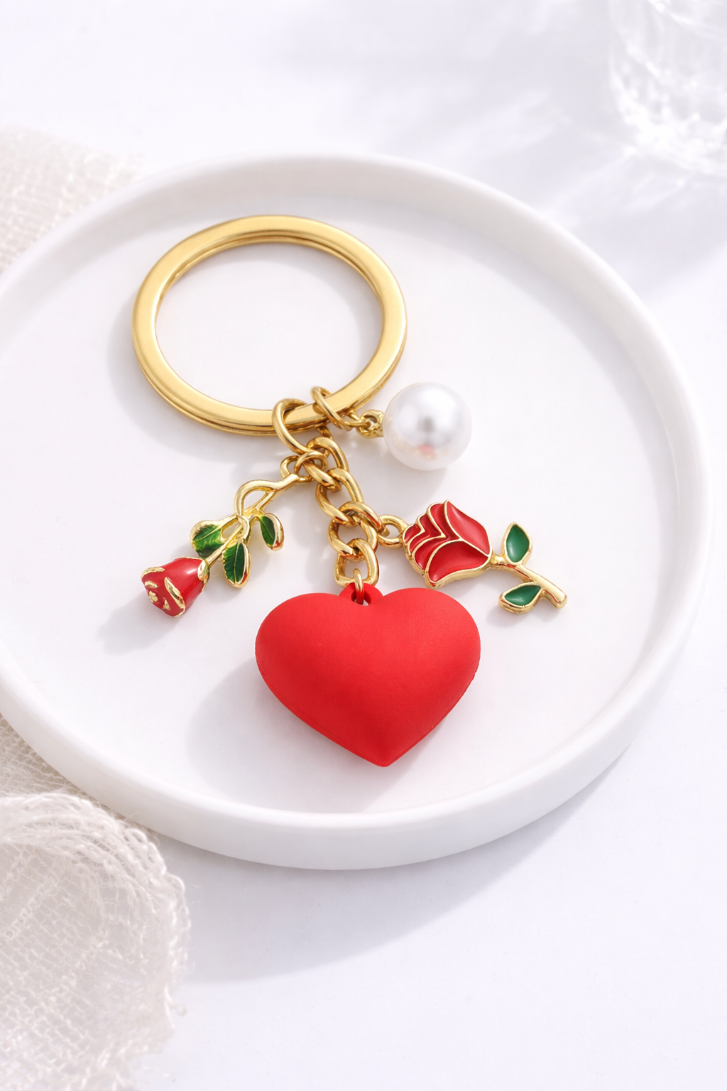 Der Schlüsselanhänger „Rosenherz“ steht für Zuneigung, Nähe und die kleinen Gesten, die große Gefühle ausdrücken. Das matte, rote Herz bildet das emotionale Zentrum dieses Designs – als Zeichen von Liebe, Verbundenheit und Wärme. Begleitet wird es von zarten Rosen und einer perlenartigen Kugel, die Romantik und Eleganz harmonisch miteinander verbinden.
